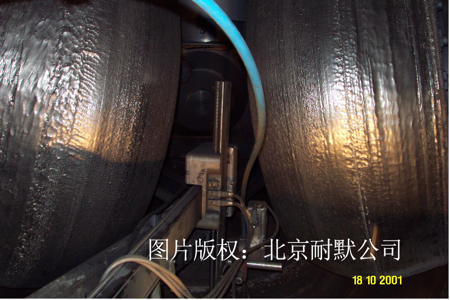 圖(1)立磨磨輥堆焊采用的藥芯焊耐磨焊絲在線堆焊